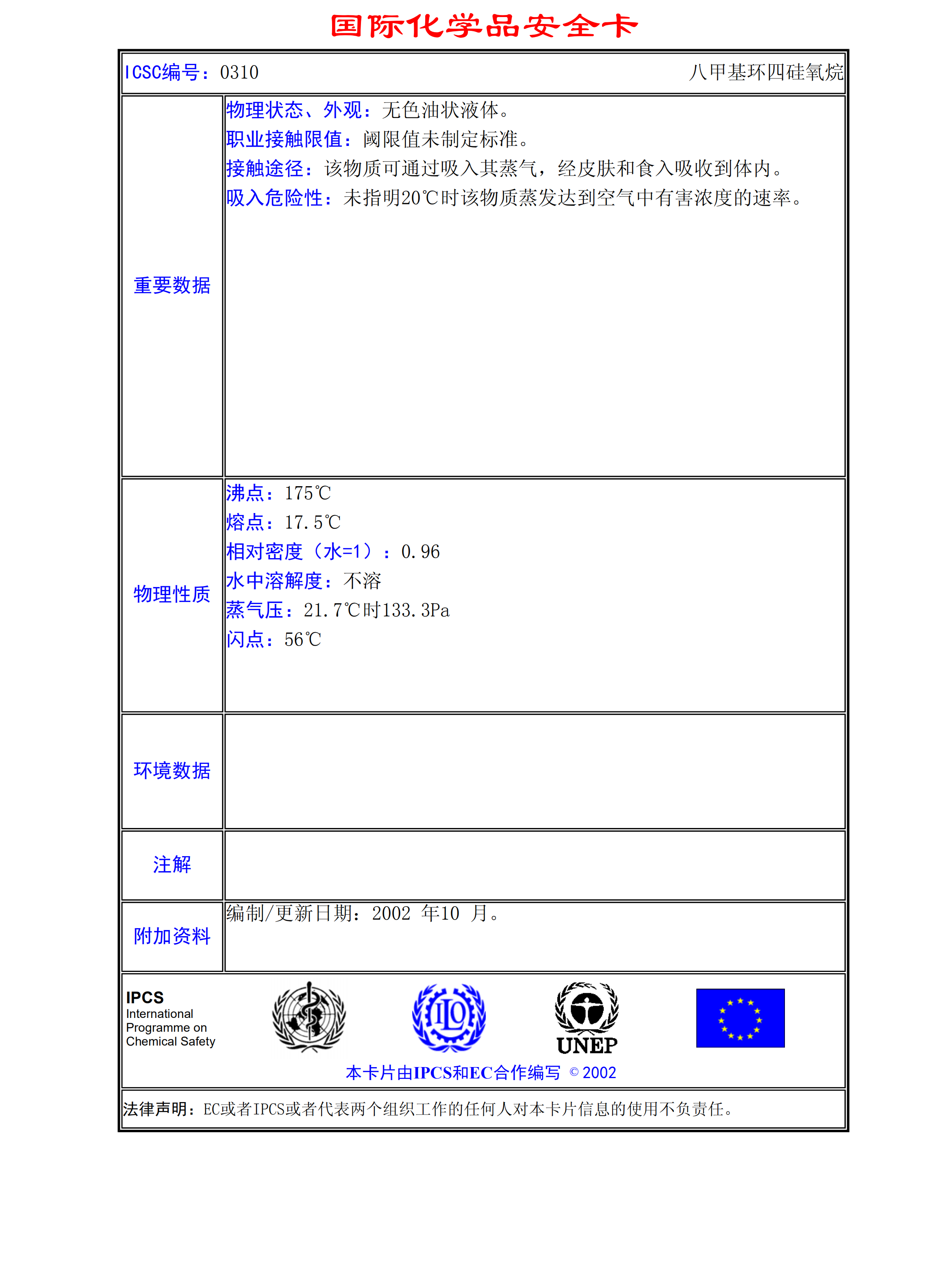 八甲基環(huán)四硅氧烷MSDS