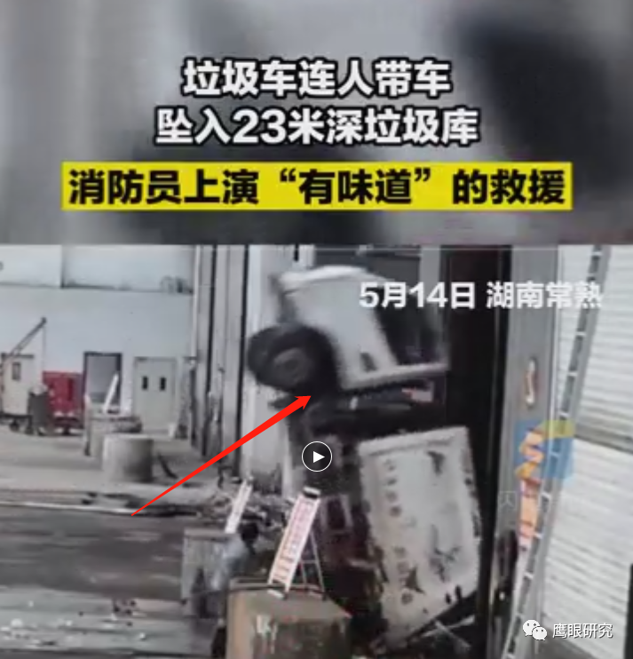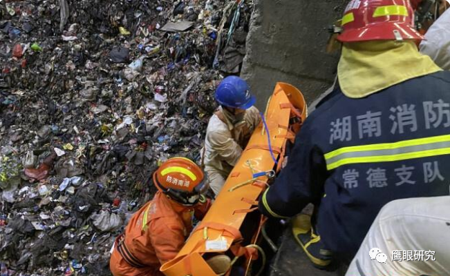 湖南某垃圾電廠一垃圾車連人帶車墜入23米深垃圾庫